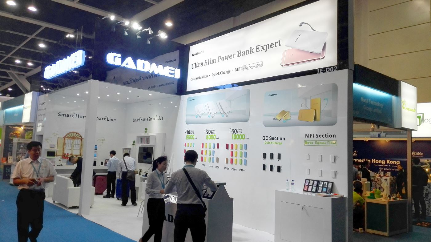GADMEI香港電子展展臺(tái)的設(shè)計(jì)和搭建全程由藝覽天下展覽一站式服務(wù)。